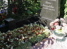 Очередная ежемесячная уборка на могиле. За прошедшее время с последней уборки были дожди. Растения стили гуще, сорняки тоже. Пыли на граните тоже не мало, особенно со стороны дороги.
