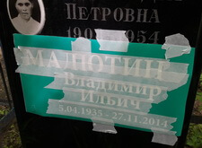 В этом заказе нам было необходимо нанести новую надпись и приклеить фотокерамику на уже существующий памятник.